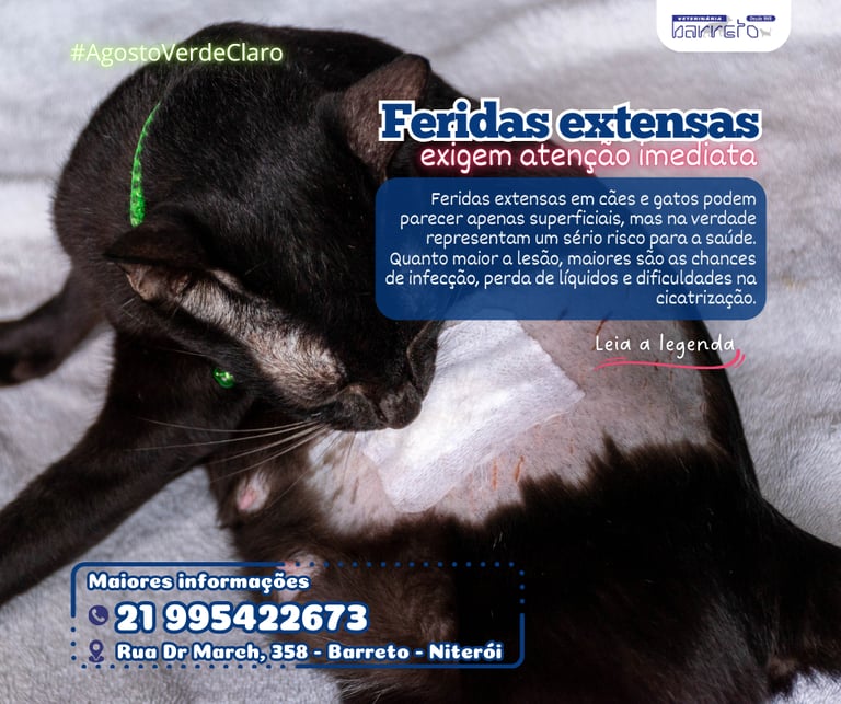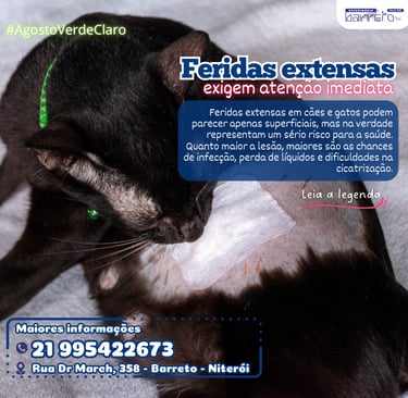 Quando um cão ou gato sofre um ferimento extenso, a situação é sempre delicada. Além da dor, há risco de infecção, dificuldade na cicatrização e até comprometimento de órgãos e tecidos. 🐶🐱