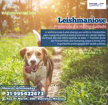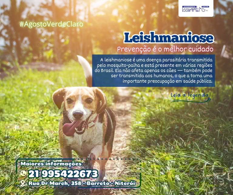 A leishmaniose é uma doença parasitária transmitida pelo mosquito-palha e está presente em várias regiões do Brasil. Ela não afeta apenas os cães — também pode ser transmitida aos humanos, o que a torna uma importante preocupação em saúde pública.